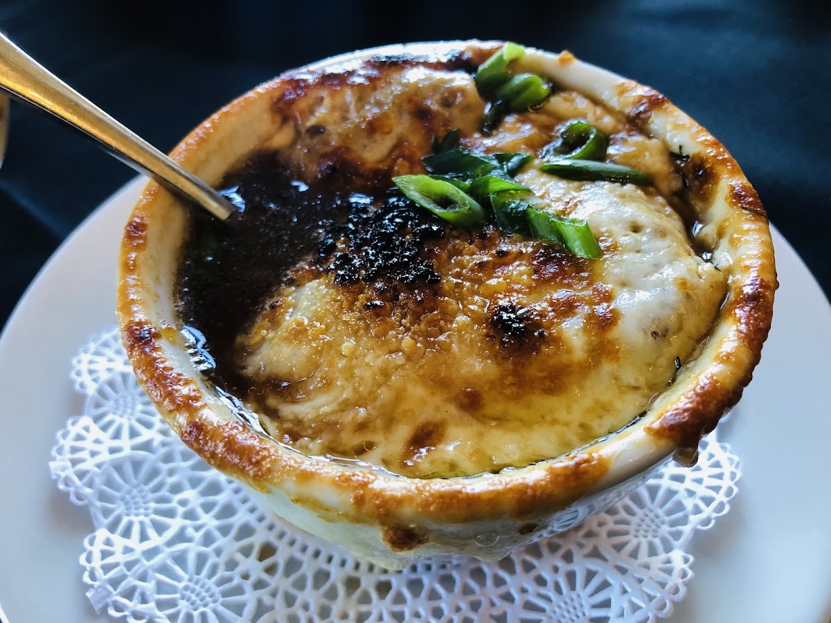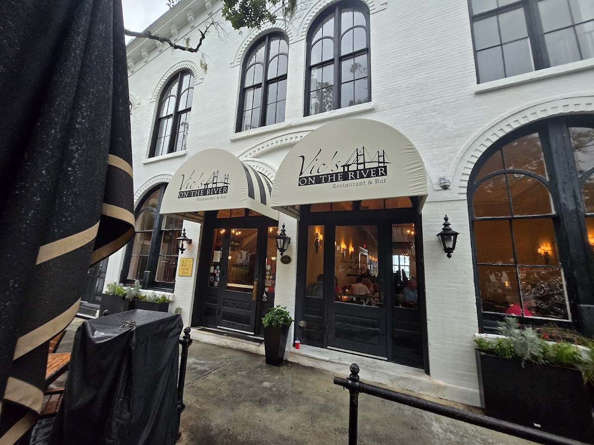 To get to Vic's, you can either enter from street level OR if you are on the river level, enter Vic's Coffee, and then take the elevator to the 4th floor. The restaurant has a very upscale elegant atmosphere. Our server was very friendly. We ordered some soups and the shrimp and grits. The French Onion was too salty, and the grits, while cooked well, needed a bit more flavor. For dessert we had the peach trio. The ice cream was good, but the bread pudding was very dry. I had higher hopes for this restaurant. While the atmosphere was inviting, I wasn't overly impressed with the food.