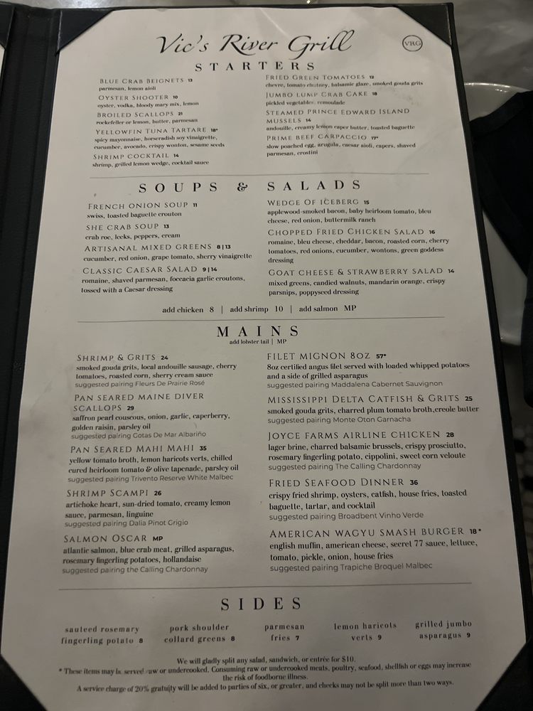 Vic's On the River, located in Savannah, GA, offers a Southern cuisine experience with a touch of elegance. With a diverse menu including dishes like Spicy Fried Shrimp, Classic Oysters Rockefeller, and Braised Lamb Shank, the restaurant caters to seafood lovers and meat enthusiasts alike. The ambiance is described as casual yet refined, with options for outdoor seating and private dining. Customers praise the attentive service and the delicious food, with standout dishes like the crab cakes and perfectly cooked octopus. The restaurant's historic building adds to the charm of the dining experience, overlooking the picturesque river. Overall, Vic's On the River provides a memorable dining experience with a blend of Southern flavors and modern touches.